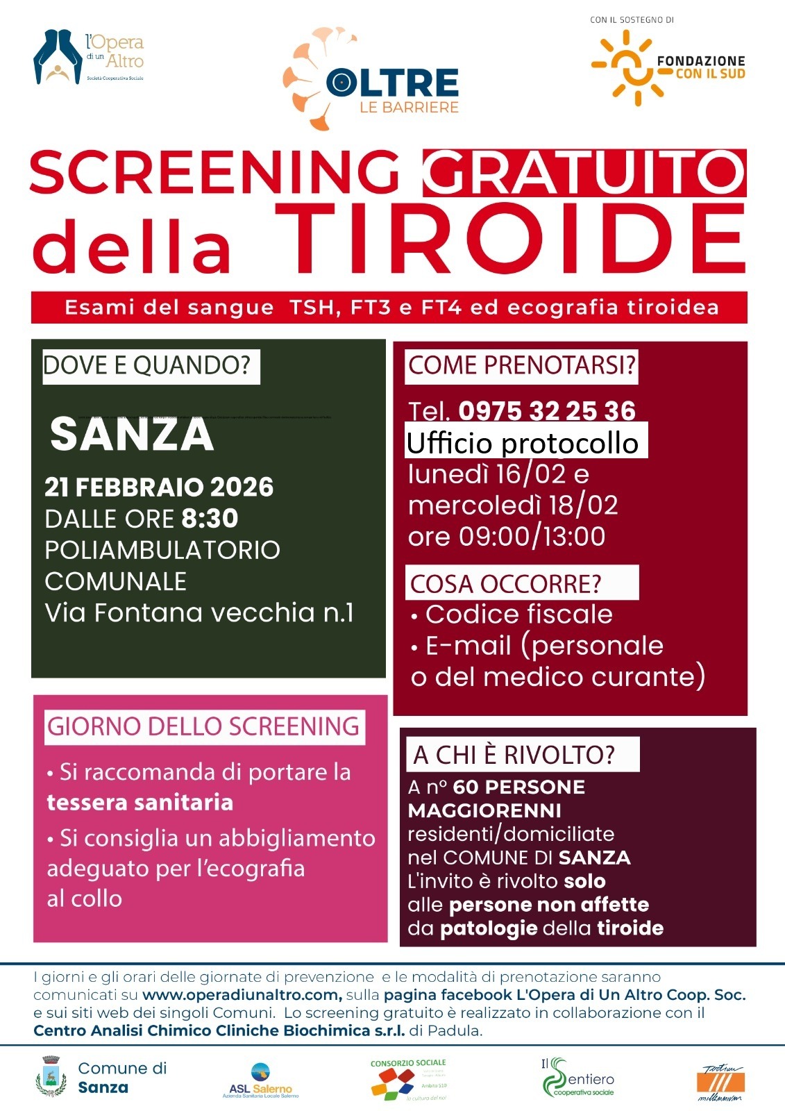 Screening gratuito della tiroide - Esami del sangue TSH, FT3 e FT4 ed ecografia tiroidea